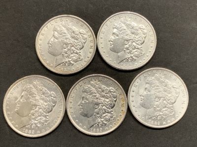 Search Item #: Keyword: Search Catalog Item #: Keyword: 20 items per page 50 items per page 100 items per page Go to page #: 327 , 328 , 329 , 330 , 331 , 332 #101 – Three (3) 1921 Morgan U.S. Silver Dollars Three (3) 1921 Morgan U.S. Silver Dollars. P&D Mint. Provenance: South Jersey single owner collection find. Estimated value: $100.00 - $200.00 More Info / Bid Now Track this Item Sold #101 – Three (3) 1921 Morgan U.S. Silver Dollars Sold More Details More Info / Bid Track Item Three (3) 1921 Morgan U.S. Silver Dollars. P&D Mint. Provenance: South Jersey single owner collection find. Estimated value: $100.00 - $200.00 #102 – Two (2) U.S. Morgan Silver Dollars S&P Two (2) U.S. Morgan Silver Dollars 1878 S and P Provenance: South Jersey single owner collection find. Estimated value: $50.00 - $200.00 More Info / Bid Now Track this Item Sold #102 – Two (2) U.S. Morgan Silver Dollars S&P Sold More Details More Info / Bid Track Item Two (2) U.S. Morgan Silver Dollars 1878 S and P Provenance: South Jersey single owner collection find. Estimated value: $50.00 - $200.00 #103 – Two (2) 1878 S Morgan U.S. Silver Dollars Two (2) U.S. Morgan Silver Dollars 1878S Provenance: South Jersey single owner collection find. Estimated value: $50.00 - $200.00 More Info / Bid Now Track this Item Sold #103 – Two (2) 1878 S Morgan U.S. Silver Dollars Sold More Details More Info / Bid Track Item Two (2) U.S. Morgan Silver Dollars 1878S Provenance: South Jersey single owner collection find. Estimated value: $50.00 - $200.00 #104 – Four (4) 1879 Morgan U.S. Silver Dollars Four (4) 1879 Morgan U.S. Silver Dollars. S,O,O,P Mints Provenance: South Jersey single owner collection find. Estimated value: $100.00 - $200.00 More Info / Bid Now Track this Item Sold #104 – Four (4) 1879 Morgan U.S. Silver Dollars Sold More Details More Info / Bid Track Item Four (4) 1879 Morgan U.S. Silver Dollars. S,O,O,P Mints Provenance: South Jersey single owner collection find. Estimated value: $100.00 - $200.00 #105 – Three (3) U.S. 1879 Morgan Silver Dollars Three (3) 1879 Morgan U.S. Silver Dollars. O,P,P Mints Provenance: South Jersey single owner collection find. Estimated value: $100.00 - $200.00 More Info / Bid Now Track this Item Sold #105 – Three (3) U.S. 1879 Morgan Silver Dollars Sold More Details More Info / Bid Track Item Three (3) 1879 Morgan U.S. Silver Dollars. O,P,P Mints Provenance: South Jersey single owner collection find. Estimated value: $100.00 - $200.00 #106 – Two (2) 1880 U.S. Morgan Silver Dollars Two (2) 1880 U.S. Morgan Silver Dollars. O and S mints. Provenance: South Jersey single owner collection find. Estimated value: $50.00 - $200.00 More Info / Bid Now Track this Item Sold #106 – Two (2) 1880 U.S. Morgan Silver Dollars Sold More Details More Info / Bid Track Item Two (2) 1880 U.S. Morgan Silver Dollars. O and S mints. Provenance: South Jersey single owner collection find. Estimated value: $50.00 - $200.00 #107 – Five (5) 1881 U.S. Morgan Silver Dollars Five (5) 1881 U.S. Morgan Silver Dollars O, S & P Mints Provenance: South Jersey single owner collection find. Estimated value: $100.00 - $200.00 More Info / Bid Now Track this Item Sold #107 – Five (5) 1881 U.S. Morgan Silver Dollars Sold More Details More Info / Bid Track Item Five (5) 1881 U.S. Morgan Silver Dollars O, S & P Mints Provenance: South Jersey single owner collection find. Estimated value: $100.00 - $200.00 #108 – Three (3) 1882 Morgan U.S. Silver Dollars Three (3) 1882 U.S. Morgan Silver Dollars. O & P mints. Provenance: South Jersey single owner collection find. Estimated value: $100.00 - $200.00 More Info / Bid Now Track this Item Sold #108 – Three (3) 1882 Morgan U.S. Silver Dollars Sold More Details More Info / Bid Track Item Three (3) 1882 U.S. Morgan Silver Dollars. O & P mints. Provenance: South Jersey single owner collection find. Estimated value: $100.00 - $200.00 #109 – Five (5) 1883 Morgan U.S. Silver Dollars Five (5) 1883 U.S. Morgan Silver Dollars. O and S mints. Provenance: South Jersey single owner collection find. Estimated value: $100.00 - $200.00 More Info / Bid Now Track this Item Sold #109 – Five (5) 1883 Morgan U.S. Silver Dollars Sold More Details More Info / Bid Track Item Five (5) 1883 U.S. Morgan Silver Dollars. O and S mints. Provenance: South Jersey single owner collection find. Estimated value: $100.00 - $200.00 #110 – Three (3) 1884 U.S. Morgan Silver Dollars Three (3) 1884 Morgan U.S. Silver Dollars. O & P Mints Provenance: South Jersey single owner collection find. Estimated value: $100.00 - $200.00 More Info / Bid Now Track this Item Sold #110 – Three (3) 1884 U.S. Morgan Silver Dollars Sold More Details More Info / Bid Track Item Three (3) 1884 Morgan U.S. Silver Dollars. O & P Mints Provenance: South Jersey single owner collection find. Estimated value: $100.00 - $200.00 #111 – Three (3) 1886 U.S. Morgan Silver Dollars Three (3) 1886 U.S. Morgan Silver Dollars O & P Mints Provenance: South Jersey single owner collection find. Estimated value: $100.00 - $200.00 More Info / Bid Now Track this Item Sold #111 – Three (3) 1886 U.S. Morgan Silver Dollars Sold More Details More Info / Bid Track Item Three (3) 1886 U.S. Morgan Silver Dollars O & P Mints Provenance: South Jersey single owner collection find. Estimated value: $100.00 - $200.00 #112 – Four (4) 1887 U.S. Morgan Silver Dollars Four (4) 1887 U.S. Morgan Silver Dollars O & P Mints Provenance: South Jersey single owner collection find. Estimated value: $100.00 - $200.00 More Info / Bid Now Track this Item Sold #112 – Four (4) 1887 U.S. Morgan Silver Dollars Sold More Details More Info / Bid Track Item Four (4) 1887 U.S. Morgan Silver Dollars O & P Mints Provenance: South Jersey single owner collection find. Estimated value: $100.00 - $200.00 #113 – 1888 4 Morgan’s P and 1889 Four (4)1888 and 1889 U.S. Morgan Silver Dollars P mint. Provenance: South Jersey single owner collection find. Estimated value: $1