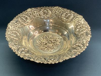 Search Item #: Keyword: Search Catalog Item #: Keyword: 20 items per page 50 items per page 100 items per page Go to page #: 329 , 330 , 331 , 332 , 333 , 334 #141 – Hazorfim Sterling Silver 26" Hanukkah Menorah A fine Hazorfim Judaica sterling silver Hanukkah Menorah. Dimensions: 26"h X 16"w Total weight: 5.15 lb Weighted center plate at bottom for structure stability. Unknown weight. Signed Hazorfim 925 Sterling. Estimated value: $2,000.00 - $4,000.00 More Info / Bid Now Track this Item Sold #141 – Hazorfim Sterling Silver 26" Hanukkah Menorah Sold More Details More Info / Bid Track Item A fine Hazorfim Judaica sterling silver Hanukkah Menorah. Dimensions: 26"h X 16"w Total weight: 5.15 lb Weighted center plate at bottom for structure stability. Unknown weight. Signed Hazorfim 925 Sterling. Estimated value: $2,000.00 - $4,000.00 #142 – 17" Hazorfim Sterling Silver Candle Holders A fine pair of large candlesticks by Hazorfim. Signed at base. Dimensions: 17"h Total weight: 3 lbs Estimated value: $400.00 - $600.00 More Info / Bid Now Track this Item Sold #142 – 17" Hazorfim Sterling Silver Candle Holders Sold More Details More Info / Bid Track Item A fine pair of large candlesticks by Hazorfim. Signed at base. Dimensions: 17"h Total weight: 3 lbs Estimated value: $400.00 - $600.00 #143 – Gorham Silver Plated Tea Service Gorham Silver Plated Coffee And Tea Service and Pitcher. Unmatched patterns. Please see photograph preview or call. Estimated value: $50.00 - $200.00 More Info / Bid Now Track this Item Sold #143 – Gorham Silver Plated Tea Service Sold More Details More Info / Bid Track Item Gorham Silver Plated Coffee And Tea Service and Pitcher. Unmatched patterns. Please see photograph preview or call. Estimated value: $50.00 - $200.00 #144 – Masorett Sterling Silver Jewelry Box Masorett Sterling Silver Jewelry Box 925. Total weight: 16.2 a oz. Dimensions: 5" X 3" X 6" Estimated value: $200.00 - $400.00 More Info / Bid Now Track this Item Sold #144 – Masorett Sterling Silver Jewelry Box Sold More Details More Info / Bid Track Item Masorett Sterling Silver Jewelry Box 925. Total weight: 16.2 a oz. Dimensions: 5" X 3" X 6" Estimated value: $200.00 - $400.00 #145 – Two (2) Sterling Silver Repousse Bowls Two (2) sterling silver repousse bowls. Marked sterling 925 at base. Dimensions: 6 1/2"d and 8 1/2"d Total weight: 7 a. oz Estimated value: $200.00 - $400.00 More Info / Bid Now Track this Item Sold #145 – Two (2) Sterling Silver Repousse Bowls Sold More Details More Info / Bid Track Item Two (2) sterling silver repousse bowls. Marked sterling 925 at base. Dimensions: 6 1/2"d and 8 1/2"d Total weight: 7 a. oz Estimated value: $200.00 - $400.00 #146 – Judaica Sterling Silver Three Part Handled Shell Compote A Judaica sterling silver three (3) part handled shell compote. Total weight: 4.5 oz Dimensions: 5 1/2"h X 7 1/2"w Estimated value: $100.00 - $200.00 More Info / Bid Now Track this Item Sold #146 – Judaica Sterling Silver Three Part Handled Shell Compote Sold More Details More Info / Bid Track Item A Judaica sterling silver three (3) part handled shell compote. Total weight: 4.5 oz Dimensions: 5 1/2"h X 7 1/2"w Estimated value: $100.00 - $200.00 #147 – Repousse Sterling Silver Floral Bowl A repousse sterling silver floral serving bowl. Total weight: 3.6 oz Dimensions: 7” diameter Estimated value: $100.00 - $200.00 More Info / Bid Now Track this Item Sold #147 – Repousse Sterling Silver Floral Bowl Sold More Details More Info / Bid Track Item A repousse sterling silver floral serving bowl. Total weight: 3.6 oz Dimensions: 7” diameter Estimated value: $100.00 - $200.00 #148 – ITALY 17 1/2" Sterling Silver Double Handled Bowl A large 17 1/2" span sterling silver double handled bowl. Made in Italy. Signed Illegibly. Dimensions: 7" X 8" and 17 1/2" Total weight: 2.5 lbs Estimated value: $600.00 - $800.00 More Info / Bid Now Track this Item Sold #148 – ITALY 17 1/2" Sterling Silver Double Handled Bowl Sold More Details More Info / Bid Track Item A large 17 1/2" span sterling silver double handled bowl. Made in Italy. Signed Illegibly. Dimensions: 7" X 8" and 17 1/2" Total weight: 2.5 lbs Estimated value: $600.00 - $800.00 #149 – Judaica .999 Silver Plate And Beaker/ Tumbler Fine Judaica 999 pure sterling silver cup and plate. Signed MsD .999 at base. Total weight: 13.1 oz 3" X 2 3/4"cup and 6 1/2"d plate Estimated value: $400.00 - $600.00 More Info / Bid Now Track this Item Sold #149 – Judaica .999 Silver Plate And Beaker/ Tumbler Sold More Details More Info / Bid Track Item Fine Judaica 999 pure sterling silver cup and plate. Signed MsD .999 at base. Total weight: 13.1 oz 3" X 2 3/4"cup and 6 1/2"d plate Estimated value: $400.00 - $600.00 #150 – Sterling Silver Repousse Serving Bowl Large Sterling Silver Centerpiece Bowl. Total weight: 9.5 oz Dimensions: 13” x 5” x 6” Estimated value: $200.00 - $400.00 More Info / Bid Now Track this Item Sold #150 – Sterling Silver Repousse Serving Bowl Sold More Details More Info / Bid Track Item Large Sterling Silver Centerpiece Bowl. Total weight: 9.5 oz Dimensions: 13” x 5” x 6” Estimated value: $200.00 - $400.00 #151 – African Resello Hyde Shield African Resello Hyde Shield Dimensions: 64” x 37” Estimated value: $200.00 - $400.00 More Info / Bid Now Track this Item No Bids Starting at $100.00 #151 – African Resello Hyde Shield Starting at $100.00 More Details More Info / Bid Track Item African Resello Hyde Shield Dimensions: 64” x 37” Estimated value: $200.00 - $400.00 #152 – Two (2) African Carved Wood Shields Dimensions: 29 1/2” x 14 1/4” (largest) Estimated value: $100.00 - $200.00 More Info / Bid Now Track this Item No Bids Starting at $50.00 #152 – Two (2) African Carved Wood Shields Starting at $50.00 More Details More Info / Bid Track Item Dimensions: 29 1/2” x 14 1/4” (largest) Estimated value: $100.00 - $200.00 #153 – African Carved Wood Mask African carved wood mas