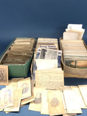Three shoe boxes full of unsorted postcards. Internationa, Local Hudson Valley, States, Holidays and stack of CDV cards including Ulysses S. Grant , Johnson, Italian General and much more! Please sse photograph preview.