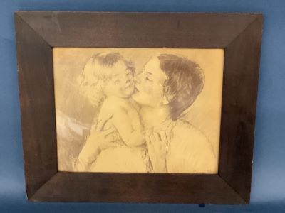 A clean separation stress break seen along neck line. Has not come detached but to close eye is noticeable. The sculpture weighs over 40 pounds.