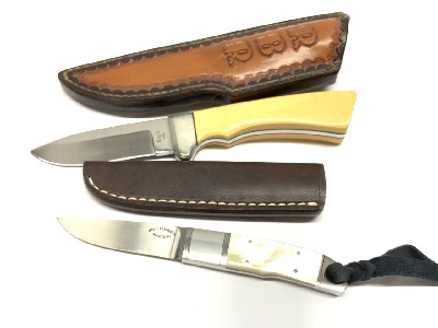 Jack Busfield 18k yellow gold handled knife with Red Brecciated Jasper stone.