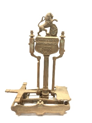 Assorted estate metal ware objects. Hotel Allerton advertising mirror, Captain John Ericsson bronze medallion/monitor, Le Marais Paris clock (As is), Colt's Gatlings Battery Gun cap etc. Please see photograph preview.