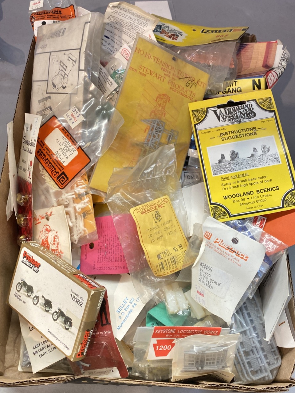 Search Item #: Keyword: Search Catalog Item #: Keyword: 20 items per page 50 items per page 100 items per page Go to page #: 46 , 47 , 48 , 49 , 50 , 51 #191 – Sixty (60) Preiser And Merten German HO People Sets. Sixty (60) Preiser And Merten German HO People Sets. New/Old Stock. Made in Germany. Vntage. Estimated value: $100.00 - $200.00 More Info / Bid Now Track this Item Sold #191 – Sixty (60) Preiser And Merten German HO People Sets. Sold More Details More Info / Bid Track Item Sixty (60) Preiser And Merten German HO People Sets. New/Old Stock. Made in Germany. Vntage. Estimated value: $100.00 - $200.00 #192 – Seventy-Five (75) Preiser And Merten German HO People Sets Seventy-Five (75) Preiser And Merten German HO People Sets Estimated value: $100.00 - $200.00 More Info / Bid Now Track this Item Sold #192 – Seventy-Five (75) Preiser And Merten German HO People Sets Sold More Details More Info / Bid Track Item Seventy-Five (75) Preiser And Merten German HO People Sets Estimated value: $100.00 - $200.00 #193 – Woodland Scenics And Preiser HO Model People Lot Thirty (30) Woodland Scenics sealed packages of situational people sets HO scale and remaining mostly Preiser German people. 100+ pieces total. A box at bottom of box contains large amount of loose people unboxed. Estimated value: $100.00 - $200.00 More Info / Bid Now Track this Item Sold #193 – Woodland Scenics And Preiser HO Model People Lot Sold More Details More Info / Bid Track Item Thirty (30) Woodland Scenics sealed packages of situational people sets HO scale and remaining mostly Preiser German people. 100+ pieces total. A box at bottom of box contains large amount of loose people unboxed. Estimated value: $100.00 - $200.00 #194 – Fifty (50) Piece "N scale Train Model Accessories 50 pc. N scale Train Model Accessories including Magnuson trucks and trailers, Preiser and Merten people, Walther’s , Stewart N scale Locomotive Crane by Virnex. Estimated value: $50.00 - $200.00 More Info / Bid Now Track this Item Sold #194 – Fifty (50) Piece "N scale Train Model Accessories Sold More Details More Info / Bid Track Item 50 pc. N scale Train Model Accessories including Magnuson trucks and trailers, Preiser and Merten people, Walther’s , Stewart N scale Locomotive Crane by Virnex. Estimated value: $50.00 - $200.00 #195 – Twenty-Five (25) Piece HO Model Accessories Lot Ho Model Accessories Lot approx 25 piece Preiser, Boyd, BraWa, Model Power,Pullman Car Works, Eastern Car Works, Bekins and Alexander scale. Estimated value: $50.00 - $200.00 More Info / Bid Now Track this Item Sold #195 – Twenty-Five (25) Piece HO Model Accessories Lot Sold More Details More Info / Bid Track Item Ho Model Accessories Lot approx 25 piece Preiser, Boyd, BraWa, Model Power,Pullman Car Works, Eastern Car Works, Bekins and Alexander scale. Estimated value: $50.00 - $200.00 #196 – Seventeen (17) German Percision ship models Seventeen (17) German Percision ship models. "N" scale size in original custom boxes. Estimated value: $50.00 - $200.00 More Info / Bid Now Track this Item Sold #196 – Seventeen (17) German Percision ship models Sold More Details More Info / Bid Track Item Seventeen (17) German Percision ship models. "N" scale size in original custom boxes. Estimated value: $50.00 - $200.00 #197 – 100+ Piece New/Old Stock HO Accessories Lot 100 piece HO accessories new/old stock packages. detna-mo, Jone’s Small world, Geandt Line, Preiaer, Scale Structures Ltd, Chooch Enterprises, Details West etc. Estimated value: $100.00 - $200.00 More Info / Bid Now Track this Item Sold #197 – 100+ Piece New/Old Stock HO Accessories Lot Sold More Details More Info / Bid Track Item 100 piece HO accessories new/old stock packages. detna-mo, Jone’s Small world, Geandt Line, Preiaer, Scale Structures Ltd, Chooch Enterprises, Details West etc. Estimated value: $100.00 - $200.00 #198 – 50+ Piece Model Shipways Precision Model Parts 50+ pc Model Shipways New/Old stock precision metal Accessories.,Mt.Pocono Pa . Estimated value: $100.00 - $200.00 More Info / Bid Now Track this Item Sold #198 – 50+ Piece Model Shipways Precision Model Parts Sold More Details More Info / Bid Track Item 50+ pc Model Shipways New/Old stock precision metal Accessories.,Mt.Pocono Pa . Estimated value: $100.00 - $200.00 #199 – 100+ Piece New/Old Stock HO Accessories Lot 100+ piece Plano Model products, Scale Structures LTD, Cal-Scale, Overland, Sierra West Etc, Estimated value: $100.00 - $200.00 More Info / Bid Now Track this Item Sold #199 – 100+ Piece New/Old Stock HO Accessories Lot Sold More Details More Info / Bid Track Item 100+ piece Plano Model products, Scale Structures LTD, Cal-Scale, Overland, Sierra West Etc, Estimated value: $100.00 - $200.00 #200 – 100+ Piece New/Old Stock HO Accessories Lot 100 Pieces Gold Medal Models brass, Jone’s Small World, Overland, Steel Structures, Mack Truck precision kits, woodland scenics Estimated value: $100.00 - $200.00 More Info / Bid Now Track this Item Sold #200 – 100+ Piece New/Old Stock HO Accessories Lot Sold More Details More Info / Bid Track Item 100 Pieces Gold Medal Models brass, Jone’s Small World, Overland, Steel Structures, Mack Truck precision kits, woodland scenics Estimated value: $100.00 - $200.00 #201 – 100+ Piece New/Old Stock HO Accessories Lot 100+ Pieces Stewart Products Portsmouth, Rhode Island, woodland scenics, Keystone locomotive Works, Faller, scale structures limited, Campbell scale models, Preiser etc Estimated value: $100.00 - $200.00 More Info / Bid Now Track this Item Sold #201 – 100+ Piece New/Old Stock HO Accessories Lot Sold More Details More Info / Bid Track Item 100+ Pieces Stewart Products Portsmouth, Rhode Island, woodland scenics, Keystone locomotive Works, Faller, scale structures limited, Campbell scale models, Preiser etc Estimated value: $100.00 - $200.00 #202 – 100+ Piece New/Old Stock HO Accessories Lot 100+ Piece New/Old Stock HO Accessories Lot Estima