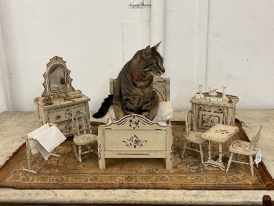 An exceptional child's 19th century American dollhouse miniature bedroom suite.