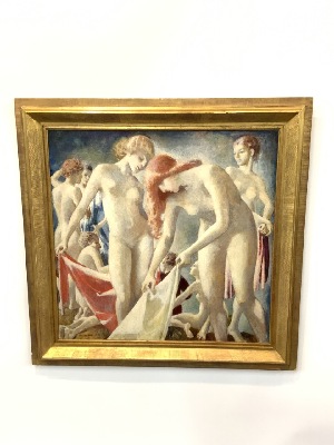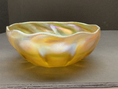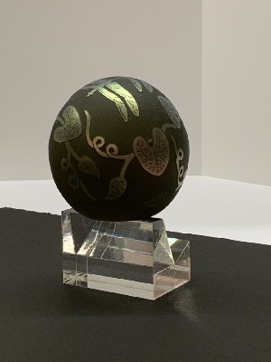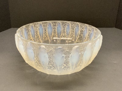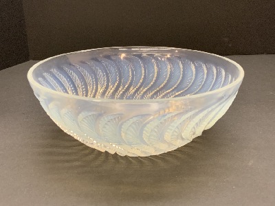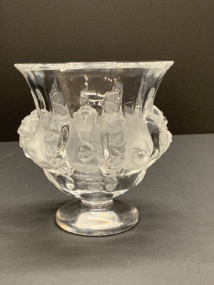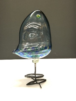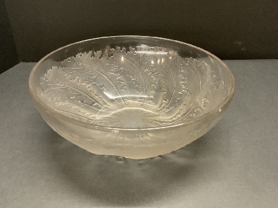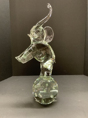Condition: One leg was lost during move. A custom second leg was made to match. Some haze inside glass. No chips, cracks or repairs to glass.