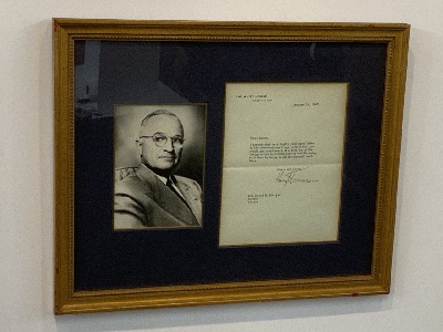 January 25th, 1949 dated letter from Harry Truman on White House Stationary.