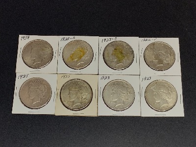 Search Item #: Keyword: Search Catalog Item #: Keyword: 20 items per page 50 items per page 100 items per page Go to page #: 673 , 674 , 675 , 676 , 677 , 678 #256 – Walking Liberty Album Containing 23 Silver Half Dollars Walking Liberty Album Containing 23 Silver Half Dollars Estimated value: $100.00 - $200.00 More Info / Bid Now Track this Item Sold #256 – Walking Liberty Album Containing 23 Silver Half Dollars Sold More Details More Info / Bid Track Item Walking Liberty Album Containing 23 Silver Half Dollars Estimated value: $100.00 - $200.00 #257 – Fifteen (15) U.S. Silver Barber Half Dollars Barber Half Dollar Whitman Album Containing 15 Silver Half Dollars. Estimated value: $100.00 - $200.00 More Info / Bid Now Track this Item Sold #257 – Fifteen (15) U.S. Silver Barber Half Dollars Sold More Details More Info / Bid Track Item Barber Half Dollar Whitman Album Containing 15 Silver Half Dollars. Estimated value: $100.00 - $200.00 #258 – (3) Whitman Mercury Dime Albums Containing 162 Silver Dimes (3) Whitman Mercury Dime Albums Containing 162 Silver Dimes. Estimated value: $100.00 - $200.00 More Info / Bid Now Track this Item Sold #258 – (3) Whitman Mercury Dime Albums Containing 162 Silver Dimes Sold More Details More Info / Bid Track Item (3) Whitman Mercury Dime Albums Containing 162 Silver Dimes. Estimated value: $100.00 - $200.00 #259 – Thirty-Two (32) U.S. Silver Half Dollars And Quarters (2) Whitman Albums- 1 Walking Liberty Album with 18 Silver Half Dollars & 1 Standing Liberty Album with 14 Silver Quarters Estimated value: $100.00 - $200.00 More Info / Bid Now Track this Item Sold #259 – Thirty-Two (32) U.S. Silver Half Dollars And Quarters Sold More Details More Info / Bid Track Item (2) Whitman Albums- 1 Walking Liberty Album with 18 Silver Half Dollars & 1 Standing Liberty Album with 14 Silver Quarters Estimated value: $100.00 - $200.00 #260 – Eighty-Nine (89) Benjamin Franklin Silver Half Dollars (3) Benjamin Franklin Silver Half Dollar Albums Containing 89 Silver Half Dollars 2 Albums Complete, 1 Album Missing One Coin Estimated value: $200.00 - $400.00 More Info / Bid Now Track this Item Sold #260 – Eighty-Nine (89) Benjamin Franklin Silver Half Dollars Sold More Details More Info / Bid Track Item (3) Benjamin Franklin Silver Half Dollar Albums Containing 89 Silver Half Dollars 2 Albums Complete, 1 Album Missing One Coin Estimated value: $200.00 - $400.00 #261 – Ten (10) U.S. Silver Peace Dollars (10) Silver Peace Dollars- 22P, 22D, 22S, 23S, 23S2, 23P, 25P 2, 28S, 35P Estimated value: $200.00 - $400.00 More Info / Bid Now Track this Item Sold #261 – Ten (10) U.S. Silver Peace Dollars Sold More Details More Info / Bid Track Item (10) Silver Peace Dollars- 22P, 22D, 22S, 23S, 23S2, 23P, 25P 2, 28S, 35P Estimated value: $200.00 - $400.00 #262 – Eight (8) U.S. Silver Peace Dollars (8) Silver Peace Dollars- 22P, 23 P x 2, 23S, 25P, 28S, 34P, 35P Estimated value: $200.00 - $400.00 More Info / Bid Now Track this Item Sold #262 – Eight (8) U.S. Silver Peace Dollars Sold More Details More Info / Bid Track Item (8) Silver Peace Dollars- 22P, 23 P x 2, 23S, 25P, 28S, 34P, 35P Estimated value: $200.00 - $400.00 #263 – Thirty-Two $1 U.S. Bills Uncut 2009 A sheet of 2009 U.S. $1 Uncut bills. Thirty-two bills total. Comes with tube and paperwork. Estimated value: $100.00 - $200.00 More Info / Bid Now Track this Item Sold #263 – Thirty-Two $1 U.S. Bills Uncut 2009 Sold More Details More Info / Bid Track Item A sheet of 2009 U.S. $1 Uncut bills. Thirty-two bills total. Comes with tube and paperwork. Estimated value: $100.00 - $200.00 #264 – Indian Brass Car Horn Vintage Brass Indian car horn. Dimensions: 16" X 6 1/2" Estimated value: $50.00 - $200.00 More Info / Bid Now Track this Item Sold #264 – Indian Brass Car Horn Sold More Details More Info / Bid Track Item Vintage Brass Indian car horn. Dimensions: 16" X 6 1/2" Estimated value: $50.00 - $200.00 #265 – Giuseppe Armani "Lady with Fawn" Statue Giuseppe Armani "Lady with Fawn" statue. Dimensions: 14 1/2" X 5 1/2" X 5 1/2" Original box included. Estimated value: $100.00 - $200.00 More Info / Bid Now Track this Item Sold #265 – Giuseppe Armani "Lady with Fawn" Statue Sold More Details More Info / Bid Track Item Giuseppe Armani "Lady with Fawn" statue. Dimensions: 14 1/2" X 5 1/2" X 5 1/2" Original box included. Estimated value: $100.00 - $200.00 #266 – Giuseppe Armani, Isadora 19"H Isadora limited edition 2212 out of 3000 1973 made in Italy 17 actually 19” x 11” x 10” with original box Estimated value: $100.00 - $200.00 More Info / Bid Now Track this Item Sold #266 – Giuseppe Armani, Isadora 19"H Sold More Details More Info / Bid Track Item Isadora limited edition 2212 out of 3000 1973 made in Italy 17 actually 19” x 11” x 10” with original box Estimated value: $100.00 - $200.00 #267 – Minton Haddon Hall Service for Eight Minton Haddon Hall Porcelain Dinner Service For Eight. Unused. Estimated value: $100.00 - $200.00 More Info / Bid Now Track this Item Sold #267 – Minton Haddon Hall Service for Eight Sold More Details More Info / Bid Track Item Minton Haddon Hall Porcelain Dinner Service For Eight. Unused. Estimated value: $100.00 - $200.00 #268 – Porcelain MZ Austria Dessert Service Porcelain MZ Austria Dessert Service Estimated value: $50.00 - $200.00 More Info / Bid Now Track this Item Sold #268 – Porcelain MZ Austria Dessert Service Sold More Details More Info / Bid Track Item Porcelain MZ Austria Dessert Service Estimated value: $50.00 - $200.00 #269 – Fine African Mahogany Hardwood Jewelry Box African hardwood jewelry box. Kevazingo Africa Honduras Mahogany Wong Art Williams and Dawn Hankins NY No-1277 4-88 Dimensions: 16" X 6" Estimated value: $50.00 - $200.00 More Info / Bid Now Track this Item Sold #269 – Fine African Mahogany Hardwood Jewelry Box Sold More Details More Info / Bid Track Item African hardwood jewelry box. Kevazingo Africa Honduras Mahogany W