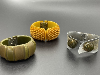 Search Item #: Keyword: Search Catalog Item #: Keyword: 20 items per page 50 items per page 100 items per page Go to page #: 728 , 729 , 730 , 731 , 732 , 733 #22 – Two (2) Heavily Carved Olive Green Bakelite Bangle Bracelets Two (2) Heavily carved olive green Bakelite bangle bracelets. ' Dimensions : 3 1/4” d and 2 1/2”d (interior) and 1 1/2” width Estimated value: $200.00 - $4,000.00 More Info / Bid Now Track this Item Sold #22 – Two (2) Heavily Carved Olive Green Bakelite Bangle Bracelets Sold More Details More Info / Bid Track Item Two (2) Heavily carved olive green Bakelite bangle bracelets. ' Dimensions : 3 1/4” d and 2 1/2”d (interior) and 1 1/2” width Estimated value: $200.00 - $4,000.00 #23 – Two-Tone Carved Bakelite Bangle Bracelet Two-tone carved Bakelite bangle bracelet. Red with butterscotch coloring. Dimensions: 3 1/4" X 2 1/2" and 1 1/2" w Dimensions: 3 1/4" X 2 1/2" and 1 1/2"w. Estimated value: $200.00 - $4,000.00 More Info / Bid Now Track this Item Sold #23 – Two-Tone Carved Bakelite Bangle Bracelet Sold More Details More Info / Bid Track Item Two-tone carved Bakelite bangle bracelet. Red with butterscotch coloring. Dimensions: 3 1/4" X 2 1/2" and 1 1/2" w Dimensions: 3 1/4" X 2 1/2" and 1 1/2"w. Estimated value: $200.00 - $4,000.00 #24 – Rare "Philadelphia" Bakelite Clamper Bracelet A Butterscotch Bakelite "Philadelphia" Multi-Colored Five (5) Fins On Each Side Clamper Closure Bracelet. Dimensions: 3" X 2 1/4" X 1 1/2" thickness. Please note straight line indent appearing to present like a seam is located on the interior side spanning the width of bracelet. Two very light edge flecks possibly at front top on butterscotch and black if even mentionable. Use scratches throughout from age. Truly remarkable piece. Estimated value: $200.00 - $4,000.00 More Info / Bid Now Track this Item Sold #24 – Rare "Philadelphia" Bakelite Clamper Bracelet Sold More Details More Info / Bid Track Item A Butterscotch Bakelite "Philadelphia" Multi-Colored Five (5) Fins On Each Side Clamper Closure Bracelet. Dimensions: 3" X 2 1/4" X 1 1/2" thickness. Please note straight line indent appearing to present like a seam is located on the interior side spanning the width of bracelet. Two very light edge flecks possibly at front top on butterscotch and black if even mentionable. Use scratches throughout from age. Truly remarkable piece. Estimated value: $200.00 - $4,000.00 #25 – Two (2) Carved Green Spinach Bakelite Bangle Bracelets Two (2) Carved Green Spinach Bakelite Bangle Bracelets Dimensions 3 1/4" X 2 1/2" inner diameter and 3/4" thickness Estimated value: $200.00 - $4,000.00 More Info / Bid Now Track this Item Sold #25 – Two (2) Carved Green Spinach Bakelite Bangle Bracelets Sold More Details More Info / Bid Track Item Two (2) Carved Green Spinach Bakelite Bangle Bracelets Dimensions 3 1/4" X 2 1/2" inner diameter and 3/4" thickness Estimated value: $200.00 - $4,000.00 #26 – Two (2) Carved Brown Vintage Bakelite Clampers Two (2) carved Bakelite clamper bracelets. Rich dark brown and chocolate brown colors. Dimensions: 2 3/4" X 2 1/2" and 1 1/2"thickness Estimated value: $200.00 - $4,000.00 More Info / Bid Now Track this Item Sold #26 – Two (2) Carved Brown Vintage Bakelite Clampers Sold More Details More Info / Bid Track Item Two (2) carved Bakelite clamper bracelets. Rich dark brown and chocolate brown colors. Dimensions: 2 3/4" X 2 1/2" and 1 1/2"thickness Estimated value: $200.00 - $4,000.00 #27 – Three Vintage Bakelite Clamper Bracelets Three (3) Vintage Bakelite clamper bracelets. Heavily carved butterscotch, Art Deco white metal with affixed Bakelite and Green Artichoke carved clamper. Dimensions:2 3/4" X 2 1/2 inch 1 1/4 inch width approx. Estimated value: $200.00 - $4,000.00 More Info / Bid Now Track this Item Sold #27 – Three Vintage Bakelite Clamper Bracelets Sold More Details More Info / Bid Track Item Three (3) Vintage Bakelite clamper bracelets. Heavily carved butterscotch, Art Deco white metal with affixed Bakelite and Green Artichoke carved clamper. Dimensions:2 3/4" X 2 1/2 inch 1 1/4 inch width approx. Estimated value: $200.00 - $4,000.00 #28 – Faux Tortoiseshell Bakelite Turtle Clamper Bracelet Faux tortoiseshell Bakelite clamper bracelet with carved wood and Bakelite turtle affixed to top. Dimensions: 3" X 2 3/4" and 2 1/2" interior. Estimated value: $200.00 - $4,000.00 More Info / Bid Now Track this Item Sold #28 – Faux Tortoiseshell Bakelite Turtle Clamper Bracelet Sold More Details More Info / Bid Track Item Faux tortoiseshell Bakelite clamper bracelet with carved wood and Bakelite turtle affixed to top. Dimensions: 3" X 2 3/4" and 2 1/2" interior. Estimated value: $200.00 - $4,000.00 #29 – Vintage Bakelite Spider And Locust Bug Pins Two gold tone metal pins with amber Bakelite. Spider and Cicada or Locust Bug. Dimensions: 3/4" X 2 1/2" (Spider) and 3/4” x 2 1/2” (Locust) Estimated value: $200.00 - $4,000.00 More Info / Bid Now Track this Item Sold #29 – Vintage Bakelite Spider And Locust Bug Pins Sold More Details More Info / Bid Track Item Two gold tone metal pins with amber Bakelite. Spider and Cicada or Locust Bug. Dimensions: 3/4" X 2 1/2" (Spider) and 3/4” x 2 1/2” (Locust) Estimated value: $200.00 - $4,000.00 #30 – Large Vintage Bakelite Figural Man Brooch/Pin 9" A very large Bakelite figural brooch/pin. Signed at reverse. Dimensions: 9 1/2” x 4” Estimated value: $200.00 - $4,000.00 More Info / Bid Now Track this Item Sold #30 – Large Vintage Bakelite Figural Man Brooch/Pin 9" Sold More Details More Info / Bid Track Item A very large Bakelite figural brooch/pin. Signed at reverse. Dimensions: 9 1/2” x 4” Estimated value: $200.00 - $4,000.00 #31 – Vintage Butterscotch Bakelite Buddha Brooch Vintage butterscotch Bakelite Buddha brooch/pin. Dimensions: 2 1/2” x 2 1/4” Estimated value: $200.00 - $4,000.00 More Info / Bid Now Track this Item Sold #31 – Vintage Butterscotch Bakelite Buddha Brooch 