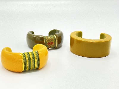 Search Item #: Keyword: Search Catalog Item #: Keyword: 20 items per page 50 items per page 100 items per page Go to page #: 730 , 731 , 732 , 733 , 734 , 735 #62 – Vintage Butterscotch Bakelite Gavel A c. 1952 Vintage Butterscotch Bakelite Auctioneer or Judges Gavel. A sterling silver plaque reads " Georgeanna, WM Independence 329 O.E.S. 1952" Dimensions: 7 1/2” x 2 1/4” x 1 1/2” Estimated value: $200.00 - $4,000.00 More Info / Bid Now Track this Item Sold #62 – Vintage Butterscotch Bakelite Gavel Sold More Details More Info / Bid Track Item A c. 1952 Vintage Butterscotch Bakelite Auctioneer or Judges Gavel. A sterling silver plaque reads " Georgeanna, WM Independence 329 O.E.S. 1952" Dimensions: 7 1/2” x 2 1/4” x 1 1/2” Estimated value: $200.00 - $4,000.00 #63 – Eleven (11) Bakelite Bangles Eleven (11) Vintage Bakelite bangle bracelets. Green marbled, stacking orange and green, olive green etc. As seen in photograph preview. Dimensions: 3 1/4" 1/2"d and 2 1/2" interior diameter. Estimated value: $200.00 - $4,000.00 More Info / Bid Now Track this Item Sold #63 – Eleven (11) Bakelite Bangles Sold More Details More Info / Bid Track Item Eleven (11) Vintage Bakelite bangle bracelets. Green marbled, stacking orange and green, olive green etc. As seen in photograph preview. Dimensions: 3 1/4" 1/2"d and 2 1/2" interior diameter. Estimated value: $200.00 - $4,000.00 #64 – Four (4) Heavily Carved Green Bakelite Bangle Bracelets Four (4) Heavily carved green Bakelite bangle bracelets. Some residue noted. Please see photograph preview. Dimensions: 3 1/4" d and 2 1/2" interior diameter. 1 1/4" to 1 1/2" widths. Estimated value: $200.00 - $4,000.00 More Info / Bid Now Track this Item Sold #64 – Four (4) Heavily Carved Green Bakelite Bangle Bracelets Sold More Details More Info / Bid Track Item Four (4) Heavily carved green Bakelite bangle bracelets. Some residue noted. Please see photograph preview. Dimensions: 3 1/4" d and 2 1/2" interior diameter. 1 1/4" to 1 1/2" widths. Estimated value: $200.00 - $4,000.00 #65 – Four (4) Vintage Bakelite Bangle Bracelets Caramel and Butterscotch Bakelite bangle bracelets. Butterscotch with chocolate brown carved flower, carved butterscotch and banded caramel and butterscotch pair. Carved flower is 2 inch diameter bracelets 3 1/4"d with 2 1/2" interior diameter. Estimated value: $200.00 - $4,000.00 More Info / Bid Now Track this Item Sold #65 – Four (4) Vintage Bakelite Bangle Bracelets Sold More Details More Info / Bid Track Item Caramel and Butterscotch Bakelite bangle bracelets. Butterscotch with chocolate brown carved flower, carved butterscotch and banded caramel and butterscotch pair. Carved flower is 2 inch diameter bracelets 3 1/4"d with 2 1/2" interior diameter. Estimated value: $200.00 - $4,000.00 #66 – Two Heavily Carved Bakelite Bangles Two (2) carved Bakelite bangles. Two tone. Dimensions: 3 1/4" d and 2 1/2" interior. 1 1/2" to 2" widths. Estimated value: $200.00 - $4,000.00 More Info / Bid Now Track this Item Sold #66 – Two Heavily Carved Bakelite Bangles Sold More Details More Info / Bid Track Item Two (2) carved Bakelite bangles. Two tone. Dimensions: 3 1/4" d and 2 1/2" interior. 1 1/2" to 2" widths. Estimated value: $200.00 - $4,000.00 #67 – Three (3) Vintage Bakelite Cuff Bracelets Three vintage Bakelite cuff bracelets. Two having fabric accents. Dimensions 1 1/4” x 3” and 1 1/2” x 3”. Greens and butterscotch. Estimated value: $200.00 - $4,000.00 More Info / Bid Now Track this Item Sold #67 – Three (3) Vintage Bakelite Cuff Bracelets Sold More Details More Info / Bid Track Item Three vintage Bakelite cuff bracelets. Two having fabric accents. Dimensions 1 1/4” x 3” and 1 1/2” x 3”. Greens and butterscotch. Estimated value: $200.00 - $4,000.00 #68 – Three (3) Vintage Bakelite Clamper Bracelets Three (3) Vintage Bakelite clamper bracelets. Two matching green and red with goldtone metal buckle and red with goldtone metal flower. Dimensions: 3 3/4" d Estimated value: $200.00 - $4,000.00 More Info / Bid Now Track this Item Sold #68 – Three (3) Vintage Bakelite Clamper Bracelets Sold More Details More Info / Bid Track Item Three (3) Vintage Bakelite clamper bracelets. Two matching green and red with goldtone metal buckle and red with goldtone metal flower. Dimensions: 3 3/4" d Estimated value: $200.00 - $4,000.00 #69 – Thirteen (13) Vintage Bakelite Butterscotch/Pumpkin Bangles Thirteen (13) Assorted Vintage Bakelite bangle bracelets. Cherry red, butterscotch, pumpkin, green etc. As seen in photograph preview. Estimated value: $200.00 - $4,000.00 More Info / Bid Now Track this Item Sold #69 – Thirteen (13) Vintage Bakelite Butterscotch/Pumpkin Bangles Sold More Details More Info / Bid Track Item Thirteen (13) Assorted Vintage Bakelite bangle bracelets. Cherry red, butterscotch, pumpkin, green etc. As seen in photograph preview. Estimated value: $200.00 - $4,000.00 #70 – Three (3) Art Deco Bakelite Dangling Charm Bangles Three (3) vintage Art Deco Bakelite bangles bracelets with dangling geometric charms. Black and Green Bakelite with assorted colored charms. Note: One charm is missing from green bracelet. 1 1/4” charms , 3 1/4" bangle only diameter. Estimated value: $200.00 - $4,000.00 More Info / Bid Now Track this Item Sold #70 – Three (3) Art Deco Bakelite Dangling Charm Bangles Sold More Details More Info / Bid Track Item Three (3) vintage Art Deco Bakelite bangles bracelets with dangling geometric charms. Black and Green Bakelite with assorted colored charms. Note: One charm is missing from green bracelet. 1 1/4” charms , 3 1/4" bangle only diameter. Estimated value: $200.00 - $4,000.00 #71 – Eighteen (18) Vintage Bakelite Bangle Bracelets Eighteen (18) Assorted Bakelite bangle bracelets. Olive green, dark green, marbled etc. Carved, stacking and matching sets as seen in photograph preview. Dimensions: 3"-3 1/4" d, 2 1/2" interior diameter and 1/2" to 1 1/2"w. Estimated valu