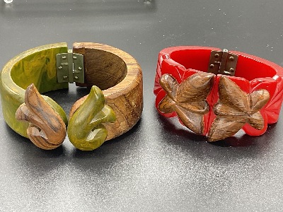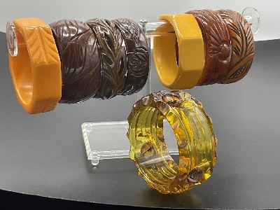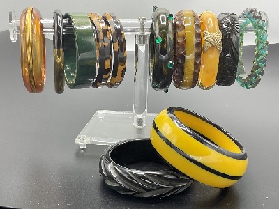Ten (10) Assorted Green Vintage Bakelite Bangle Bracelets. Apple green, creamed spinach, olive green etc.