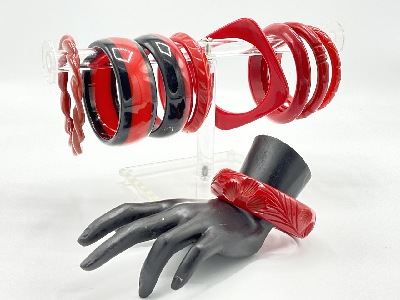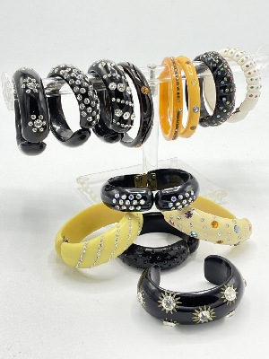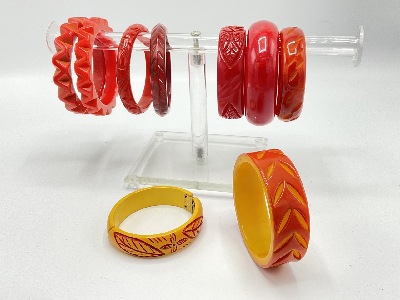 Search Item #: Keyword: Search Catalog Item #: Keyword: 20 items per page 50 items per page 100 items per page Go to page #: 737 , 738 , 739 , 740 , 741 , 742 #202 – Reverse Carved Apple Juice and Olive Green Laminate Clamper Bracelet A reverse carved apple juice bakelite and olive green laminate clamper bracelet with applied floral bouquet provably made out of leather pieces. Dimensions: 1 1/4” x 2 1/2” x 2 1/4” Bouquet is 1" diameter Estimated value: $200.00 - $4,000.00 More Info / Bid Now Track this Item Sold #202 – Reverse Carved Apple Juice and Olive Green Laminate Clamper Bracelet Sold More Details More Info / Bid Track Item A reverse carved apple juice bakelite and olive green laminate clamper bracelet with applied floral bouquet provably made out of leather pieces. Dimensions: 1 1/4” x 2 1/2” x 2 1/4” Bouquet is 1" diameter Estimated value: $200.00 - $4,000.00 #203 – Vintage Heavily Carved Two Tone Bakelite Bangle A vintage heavily carved chocolate and caramel Bakelite bangled. Dimensions: 3 1/4” , 1 1/4” thickness Damaged flowe and crack noted. Please see photograph preview. Great study piece. Estimated value: $200.00 - $4,000.00 More Info / Bid Now Track this Item Sold #203 – Vintage Heavily Carved Two Tone Bakelite Bangle Sold More Details More Info / Bid Track Item A vintage heavily carved chocolate and caramel Bakelite bangled. Dimensions: 3 1/4” , 1 1/4” thickness Damaged flowe and crack noted. Please see photograph preview. Great study piece. Estimated value: $200.00 - $4,000.00 #204 – Vintage Black/Butterscotch Laminate Carved Geometric Bangles Black and butterscotch laminate bangle bracelets with carved geometric designs. Dimensions: 3" d and 1/4" to 3/4" thickness. Estimated value: $200.00 - $4,000.00 More Info / Bid Now Track this Item Sold #204 – Vintage Black/Butterscotch Laminate Carved Geometric Bangles Sold More Details More Info / Bid Track Item Black and butterscotch laminate bangle bracelets with carved geometric designs. Dimensions: 3" d and 1/4" to 3/4" thickness. Estimated value: $200.00 - $4,000.00 #205 – Thirteen (13) Jeweled Bakelite Bangles Thirteen (13) vintage jeweled Bakelite clamper and bangle bracelets. Three bangles with rhinestones, one black cuff with bright rhinestones and remaining nine are clamper bracelets. Mostly clampers, one cuff and three bangles. Estimated value: $200.00 - $4,000.00 More Info / Bid Now Track this Item Sold #205 – Thirteen (13) Jeweled Bakelite Bangles Sold More Details More Info / Bid Track Item Thirteen (13) vintage jeweled Bakelite clamper and bangle bracelets. Three bangles with rhinestones, one black cuff with bright rhinestones and remaining nine are clamper bracelets. Mostly clampers, one cuff and three bangles. Estimated value: $200.00 - $4,000.00 #206 – Nine (9) Vintage Bakelite Bangle Bracelets Nine (9) Vintage Bakelite Bangle Bracelets A pair of zig zag red bangles butterscotch and red yellow corn clamper with red etc. Dimensions: red and yellow laminate 3”d and 1” thickness Estimated value: $200.00 - $4,000.00 More Info / Bid Now Track this Item Sold #206 – Nine (9) Vintage Bakelite Bangle Bracelets Sold More Details More Info / Bid Track Item Nine (9) Vintage Bakelite Bangle Bracelets A pair of zig zag red bangles butterscotch and red yellow corn clamper with red etc. Dimensions: red and yellow laminate 3”d and 1” thickness Estimated value: $200.00 - $4,000.00 #207 – Three Piece Apple Juice Bakelite Three (3) piece apple juice Bakelite bangles and brooch. Geometric designed bangles and jeweled bar pin Dimensions: 3” - 3 1/2”d and 1/2” thickness 1 1/2” x 3 1/4” (pin) Estimated value: $200.00 - $4,000.00 More Info / Bid Now Track this Item Sold #207 – Three Piece Apple Juice Bakelite Sold More Details More Info / Bid Track Item Three (3) piece apple juice Bakelite bangles and brooch. Geometric designed bangles and jeweled bar pin Dimensions: 3” - 3 1/2”d and 1/2” thickness 1 1/2” x 3 1/4” (pin) Estimated value: $200.00 - $4,000.00 #208 – Laminate Bakelite And Wood Arrow Pin Vintage Bakelite red, yellow and green laminate on wood articulated arrow pin. Dimensions: 3 3/4” x 3/4” Estimated value: $200.00 - $4,000.00 More Info / Bid Now Track this Item Sold #208 – Laminate Bakelite And Wood Arrow Pin Sold More Details More Info / Bid Track Item Vintage Bakelite red, yellow and green laminate on wood articulated arrow pin. Dimensions: 3 3/4” x 3/4” Estimated value: $200.00 - $4,000.00 #209 – Reverse Carved Apple Juice Bakelite Bangle Reverse carved apple juice Bakelite carved bangle bracelet with painted reverse florals. dimensions: 3 1/4” d 1/2” d Estimated value: $200.00 - $4,000.00 More Info / Bid Now Track this Item Sold #209 – Reverse Carved Apple Juice Bakelite Bangle Sold More Details More Info / Bid Track Item Reverse carved apple juice Bakelite carved bangle bracelet with painted reverse florals. dimensions: 3 1/4” d 1/2” d Estimated value: $200.00 - $4,000.00 #210 – Set of Four Matching Geometric Bakelite Bangles Set of four (4) matching geometric red and green vintage Bakelite bangle bracelets. Dimensions: 3 1/4 and 1/4” thickness. Estimated value: $200.00 - $4,000.00 More Info / Bid Now Track this Item Sold #210 – Set of Four Matching Geometric Bakelite Bangles Sold More Details More Info / Bid Track Item Set of four (4) matching geometric red and green vintage Bakelite bangle bracelets. Dimensions: 3 1/4 and 1/4” thickness. Estimated value: $200.00 - $4,000.00 #211 – Art Deco Rhinestone Yellow/ Orange Bakelite Clamper An Art Deco yellow to orange colored vintage Bakelite clampber bracelet with bright red/orange rhinetones. Dimensions: 2 3/4” x 3” Estimated value: $200.00 - $4,000.00 More Info / Bid Now Track this Item Sold #211 – Art Deco Rhinestone Yellow/ Orange Bakelite Clamper Sold More Details More Info / Bid Track Item An Art Deco yellow to orange colored vintage Bakelite clampber bracel