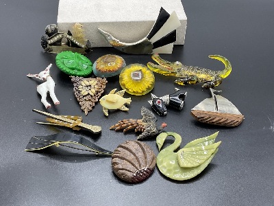 Search Item #: Keyword: Search Catalog Item #: Keyword: 20 items per page 50 items per page 100 items per page Go to page #: 741 , 742 , 743 , 744 , 745 , 746 #282 – Sixteen (16) Vintage Plastic Jewelry Group Sixteen (16) assorted lucite, Bakelite and vintage plastic figural pins. As seen in photograph preview. Lucite sunflower bug pin and button, swan, deer, alligator etc. Estimated value: $200.00 - $4,000.00 More Info / Bid Now Track this Item Sold #282 – Sixteen (16) Vintage Plastic Jewelry Group Sold More Details More Info / Bid Track Item Sixteen (16) assorted lucite, Bakelite and vintage plastic figural pins. As seen in photograph preview. Lucite sunflower bug pin and button, swan, deer, alligator etc. Estimated value: $200.00 - $4,000.00 #283 – Grouping Of Carved Celluloid Elegant Rhinestone Jeweled Jewelry Six (6) Carved Celluloid Rhinetsone Jewelry Pieces. Two clamper bracelets, two brooches and two neckaces. As seen in photograph preview. Estimated value: $200.00 - $4,000.00 More Info / Bid Now Track this Item Sold #283 – Grouping Of Carved Celluloid Elegant Rhinestone Jeweled Jewelry Sold More Details More Info / Bid Track Item Six (6) Carved Celluloid Rhinetsone Jewelry Pieces. Two clamper bracelets, two brooches and two neckaces. As seen in photograph preview. Estimated value: $200.00 - $4,000.00 #284 – A pair early beacon light bow pins with crimped edges 1 1/4” x 2” Two carved Bakelite bow pins with crimped edges. Dmensions: 1 1/4" X 2" Note: Discoloration in image appearing to be due to age from glue residue. Estimated value: $200.00 - $4,000.00 More Info / Bid Now Track this Item Sold #284 – A pair early beacon light bow pins with crimped edges 1 1/4” x 2” Sold More Details More Info / Bid Track Item Two carved Bakelite bow pins with crimped edges. Dmensions: 1 1/4" X 2" Note: Discoloration in image appearing to be due to age from glue residue. Estimated value: $200.00 - $4,000.00 #285 – Compiled Bakelite, Lucite And Carved Wood Vintage Jewelry Group Fifteen (15) piece Lucite, Bakelite and carved wood jewelry. pins, Bakelite lip rouge, reverse carved buttons, clips, walnut baskets, lucite frog, Cameo and cameo ring (Bakelite). As seen in photograph preview. Estimated value: $200.00 - $4,000.00 More Info / Bid Now Track this Item Sold #285 – Compiled Bakelite, Lucite And Carved Wood Vintage Jewelry Group Sold More Details More Info / Bid Track Item Fifteen (15) piece Lucite, Bakelite and carved wood jewelry. pins, Bakelite lip rouge, reverse carved buttons, clips, walnut baskets, lucite frog, Cameo and cameo ring (Bakelite). As seen in photograph preview. Estimated value: $200.00 - $4,000.00 #286 – Exceptional Early Five Strand Cherry Amber Bakelite Bead Necklace Magnificent five strand cherry amber and yellow Bakelite necklace. Early design and showing in very good condition. Dimensions: 14" drop Estimated value: $200.00 - $4,000.00 More Info / Bid Now Track this Item Sold #286 – Exceptional Early Five Strand Cherry Amber Bakelite Bead Necklace Sold More Details More Info / Bid Track Item Magnificent five strand cherry amber and yellow Bakelite necklace. Early design and showing in very good condition. Dimensions: 14" drop Estimated value: $200.00 - $4,000.00 #287 – Sixteen (16) Vintage Bakelite Bangle Bracelets Sixteen (16) Vintage Bakelite Bangle Bracelets. Butterscotch, Tortoise, Greens, Creamed Spinach etc. Estimated value: $200.00 - $4,000.00 More Info / Bid Now Track this Item Sold #287 – Sixteen (16) Vintage Bakelite Bangle Bracelets Sold More Details More Info / Bid Track Item Sixteen (16) Vintage Bakelite Bangle Bracelets. Butterscotch, Tortoise, Greens, Creamed Spinach etc. Estimated value: $200.00 - $4,000.00 #288 – Compiled Vintage Plastic And Bakelite Jewelry Compiled vintage plastic jewelry, reverse carved Bakelite clips (a few blue rhinestones missing) , top hat pin, mahjong pins, Buddha face bracelet, painted faces neckace etc. As seen in photograph preview. Estimated value: $200.00 - $4,000.00 More Info / Bid Now Track this Item Sold #288 – Compiled Vintage Plastic And Bakelite Jewelry Sold More Details More Info / Bid Track Item Compiled vintage plastic jewelry, reverse carved Bakelite clips (a few blue rhinestones missing) , top hat pin, mahjong pins, Buddha face bracelet, painted faces neckace etc. As seen in photograph preview. Estimated value: $200.00 - $4,000.00 #289 – Three (3) Vintage Bakelite Necklaces Three (3) Bakelite vintage necklaces. A nice butterscotch carved cross necklace, early silver with mounted Bakelite disc and Romanesque dark brown carved pendant on leather cord. Estimated value: $200.00 - $4,000.00 More Info / Bid Now Track this Item Sold #289 – Three (3) Vintage Bakelite Necklaces Sold More Details More Info / Bid Track Item Three (3) Bakelite vintage necklaces. A nice butterscotch carved cross necklace, early silver with mounted Bakelite disc and Romanesque dark brown carved pendant on leather cord. Estimated value: $200.00 - $4,000.00 #290 – Twenty Four (24) Vintage And Contemporary Plastic Bangles Twenty Four (24) Vintage And Contemporary Plastic Bangles. Estimated value: $200.00 - $4,000.00 More Info / Bid Now Track this Item Sold #290 – Twenty Four (24) Vintage And Contemporary Plastic Bangles Sold More Details More Info / Bid Track Item Twenty Four (24) Vintage And Contemporary Plastic Bangles. Estimated value: $200.00 - $4,000.00 #291 – Eleven (11) Vintage And Contemporary Plastic Bangles Eleven (11) Vintage And Contemporary Plastic Bangles. Estimated value: $200.00 - $4,000.00 More Info / Bid Now Track this Item Sold #291 – Eleven (11) Vintage And Contemporary Plastic Bangles Sold More Details More Info / Bid Track Item Eleven (11) Vintage And Contemporary Plastic Bangles. Estimated value: $200.00 - $4,000.00 #292 – Compiled Bakelite Objects Group Compiled Bakelite objects. Mirror, bottle opener, Chad Valley cup, poker chips, measuring tape, crimper tool and pen. Estimate