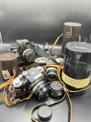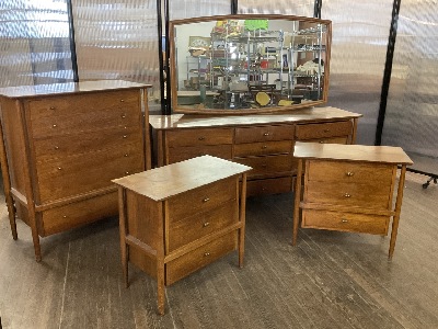 Dresser with mirror, Bureau and two (2) night stands. All hardware present.