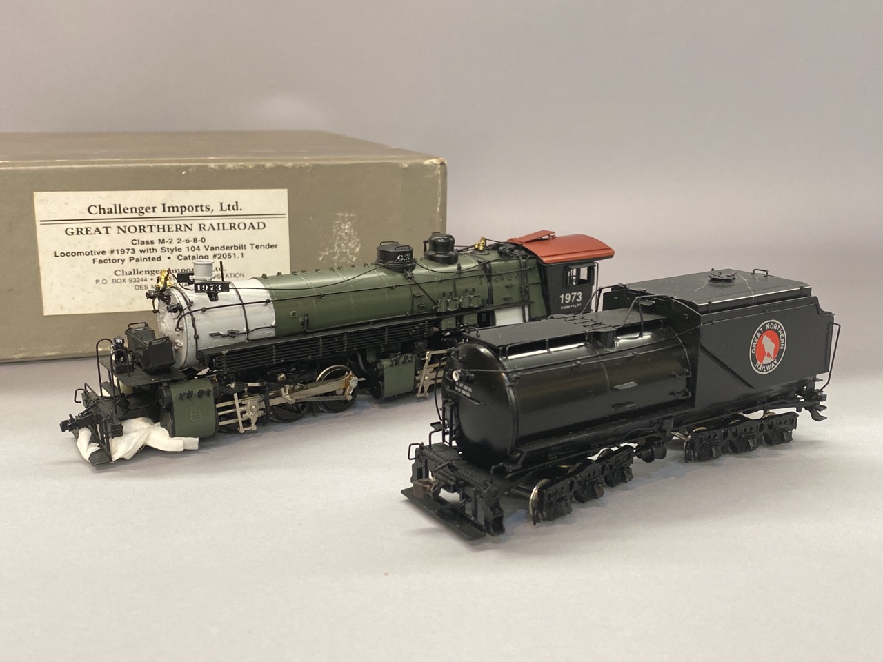 Challenger Imports Great Northern Railroad M-2 2-6-8-0 Loco #1973 Factory painted (Glacier Park).Vanderbilt tender style 104 Catalog 2202.1 . Samhongsa , Made in Korea with original box