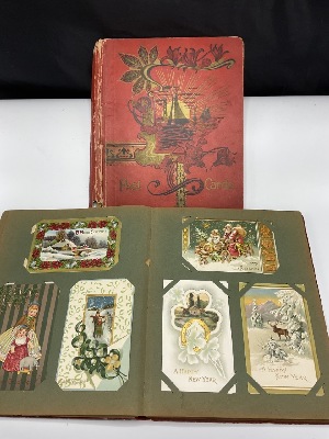 Two (2) Estate Postcard Albums. Approx. 176 cards combined in the two albums from original family. Unsorted and first time ever sold. Some nice cards, Holiday including Christmas,Easter, New Year's, Valentine's, Birthday etc.. Local postcards including Newburgh, Modena, Kingston, Wallkill, NY Real Photo Postcards and more!