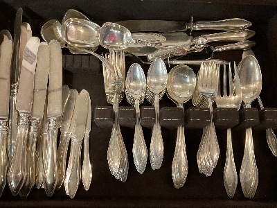 Total Weight: 67.8125 Troy ounces plus 24.79 knives and serving pieces with handles