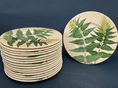 Service for sixteen (16) Italian porcelain dinner plates. Este A Mano for Bloomingdales. Made in Italy Dimensions: 13" diameter