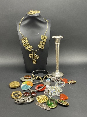 Search Item #: Keyword: Search Catalog Item #: Keyword: 20 items per page 50 items per page 100 items per page Go to page #: 946 , 947 , 948 , 949 , 950 , 951 #1 – Vintage Indian Silver and Turquoise Brooch Pendant, Signed HV Vintage American Indian Turquoise and Silver Pendant. Signed HV Verso. Dimensions: 2” d Estimated value: $100.00 - $200.00 More Info / Bid Now Track this Item Sold #1 – Vintage Indian Silver and Turquoise Brooch Pendant, Signed HV Sold More Details More Info / Bid Track Item Vintage American Indian Turquoise and Silver Pendant. Signed HV Verso. Dimensions: 2” d Estimated value: $100.00 - $200.00 #2 – 14k White Gold Diamond Bar Pin 14k White Gold Diamond Bar Pin. Total weight: 3.75 grams Dimensions: 1/2” x 1 3/4” Estimated value: $100.00 - $200.00 More Info / Bid Now Track this Item Sold #2 – 14k White Gold Diamond Bar Pin Sold More Details More Info / Bid Track Item 14k White Gold Diamond Bar Pin. Total weight: 3.75 grams Dimensions: 1/2” x 1 3/4” Estimated value: $100.00 - $200.00 #3 – Vintage 18K White Gold Mine Cut Diamond Ring 18K White Gold Lady's Diamond Engagement Ring. Fine setting with round mine cut diamond. Size 8 Tw 1.76 grams Estimated value: $100.00 - $200.00 More Info / Bid Now Track this Item Sold #3 – Vintage 18K White Gold Mine Cut Diamond Ring Sold More Details More Info / Bid Track Item 18K White Gold Lady's Diamond Engagement Ring. Fine setting with round mine cut diamond. Size 8 Tw 1.76 grams Estimated value: $100.00 - $200.00 #4 – European 9ct. Gold Persian Turquoise Antique Ring European 9ct. Gold Persian turquoise antique ring. European maker's marks and 300 signed on outside of band. Size 6 Total weight: 1.68 grams Estimated value: $100.00 - $200.00 More Info / Bid Now Track this Item Sold #4 – European 9ct. Gold Persian Turquoise Antique Ring Sold More Details More Info / Bid Track Item European 9ct. Gold Persian turquoise antique ring. European maker's marks and 300 signed on outside of band. Size 6 Total weight: 1.68 grams Estimated value: $100.00 - $200.00 #5 – Navaho Indian Ruby Zoisite Necklace Navajo Indian Ruby Zoisite Necklace with Sterling Silver Ball Spacers and Clasp. Dimensions: 10 1/2" drop and stones 1 1/4" X 1". Estimated value: $50.00 - $200.00 More Info / Bid Now Track this Item Sold #5 – Navaho Indian Ruby Zoisite Necklace Sold More Details More Info / Bid Track Item Navajo Indian Ruby Zoisite Necklace with Sterling Silver Ball Spacers and Clasp. Dimensions: 10 1/2" drop and stones 1 1/4" X 1". Estimated value: $50.00 - $200.00 #6 – Smokey Quartz Gemstone Bead Choker Necklace Smokey Quartz ball choker necklace. Dimensions: 16” length and stones being 3/4" diameter. Estimated value: $100.00 - $200.00 More Info / Bid Now Track this Item Sold #6 – Smokey Quartz Gemstone Bead Choker Necklace Sold More Details More Info / Bid Track Item Smokey Quartz ball choker necklace. Dimensions: 16” length and stones being 3/4" diameter. Estimated value: $100.00 - $200.00 #7 – Estate Compiled Gemstones and Costume Necklaces w/SS Approximately 20 Estate found gemstone and costume necklaces. Many with sterling silver clasps. Coral, Turquoise, Cat's Eye, Amethyst etc. As seen in photograph preview. Estimated value: $50.00 - $200.00 More Info / Bid Now Track this Item Sold #7 – Estate Compiled Gemstones and Costume Necklaces w/SS Sold More Details More Info / Bid Track Item Approximately 20 Estate found gemstone and costume necklaces. Many with sterling silver clasps. Coral, Turquoise, Cat's Eye, Amethyst etc. As seen in photograph preview. Estimated value: $50.00 - $200.00 #8 – Estate Compiled Jewelry Lot w/SS Estate compiled jewelry group with assorted pins, necklaces, sterling silver weighted bud vase, sterling silver amber earrings, sterling silver earrings, pins etc. As seen in photograph preview. Estimated value: $50.00 - $200.00 More Info / Bid Now Track this Item Sold #8 – Estate Compiled Jewelry Lot w/SS Sold More Details More Info / Bid Track Item Estate compiled jewelry group with assorted pins, necklaces, sterling silver weighted bud vase, sterling silver amber earrings, sterling silver earrings, pins etc. As seen in photograph preview. Estimated value: $50.00 - $200.00 #9 – Nine (9) Bangle Bracelets Sterling Silver Nine (9) Assorted Sterling Silver Bangle Bracelets. Total weight: 61 grams Estimated value: $100.00 - $200.00 More Info / Bid Now Track this Item Sold #9 – Nine (9) Bangle Bracelets Sterling Silver Sold More Details More Info / Bid Track Item Nine (9) Assorted Sterling Silver Bangle Bracelets. Total weight: 61 grams Estimated value: $100.00 - $200.00 #10 – Two (2) MMA Sterling Silver Cuff Bracelets w/ Opals Two (2) MMA sterling silver cuff bracelets with opal inlayed stones. Dimensions: 3" X 3 1/4" Total weight: 122.06 grams Condition: One has slight dent on tip facing front of hand. Opals are nice and clean. Silver needs further polishing. Estimated value: $50.00 - $200.00 More Info / Bid Now Track this Item Sold #10 – Two (2) MMA Sterling Silver Cuff Bracelets w/ Opals Sold More Details More Info / Bid Track Item Two (2) MMA sterling silver cuff bracelets with opal inlayed stones. Dimensions: 3" X 3 1/4" Total weight: 122.06 grams Condition: One has slight dent on tip facing front of hand. Opals are nice and clean. Silver needs further polishing. Estimated value: $50.00 - $200.00 #11 – Afro Brazilian Balangandan An Afro-Brazlilian Balangandan. Silver plated chain and chatelaine style charms. Dimensions: 5 1/2” x 6 1/2” and a 12 inch drop Estimated value: $50.00 - $200.00 More Info / Bid Now Track this Item Sold #11 – Afro Brazilian Balangandan Sold More Details More Info / Bid Track Item An Afro-Brazlilian Balangandan. Silver plated chain and chatelaine style charms. Dimensions: 5 1/2” x 6 1/2” and a 12 inch drop Estimated value: $50.00 - $200.00 #12 – 1879 Morgan Silver Dollar Pendant and Chain 1879 Morgan Silver Dollar with pendant frame and chai